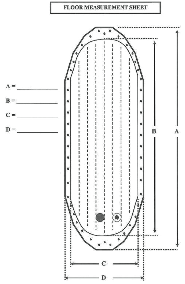 Since the boats are handmade, the two parts that are not normally stocked are replacement floors and thwarts (since the measurements can vary slightly). If you need a replacement floor or thwart, we need the following measurements listed in the diagram(s) below, when you place your order. The best time to order is from Late Summer to December, for delivery the following spring, if you need it by the start of the season.