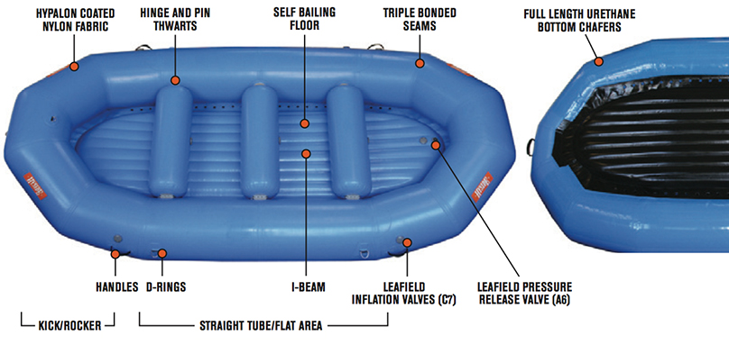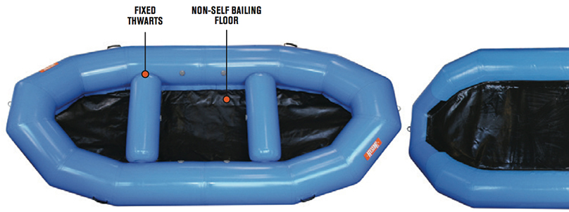 Includes all of the features the self-bailing raft has, with the exception of the floor type and fixed thwarts.