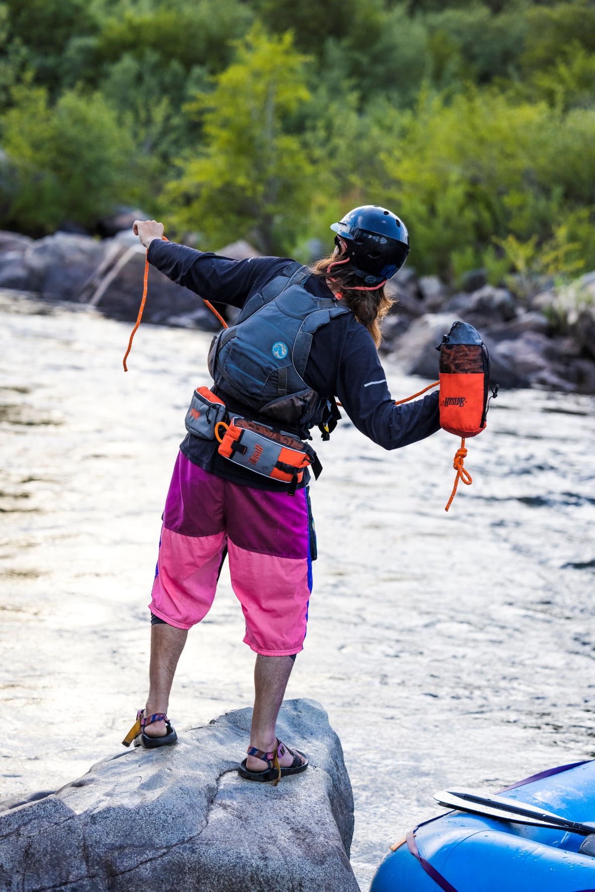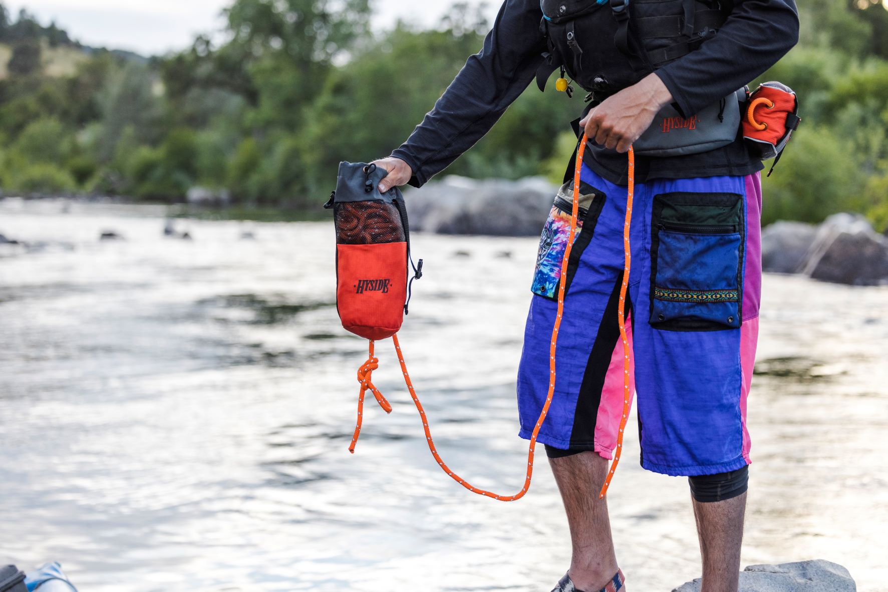 Deluxe bright orange throw bag holds 70′ feet of 5/16 durable polypro floating rescue rope. Reflective Tracer enhances night visibility.