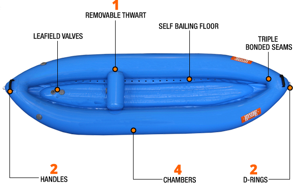 Very similar to the K1 9.0 but at 10.5’ long, the extra 1.5’ of cargo space will allow you to pack more gear or bring a furry friend. As always, several loops through the drain holes will assure your gear is low and secured. All of our IK’s contain an easy to adjustment thwart system that you can change to give you, your legs, and lower back the optimal ride you are looking for.