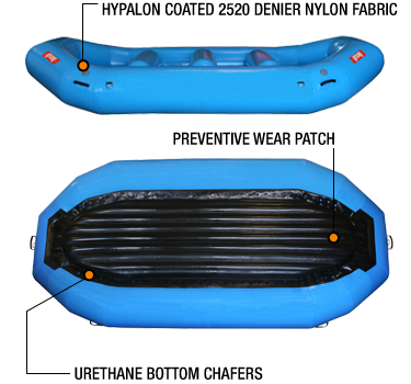 Sleek, agile, and bomber. This durable 13 foot boat is the favorite among outfitters in the technical and sharp Clear Creek in Colorado. If you need a boat to floss through tight channels, yet bare the burden of bumping into railroad blast rock every now and then, this is the boat for you. Desire the PRO material but want something bigger? Our PRO series produces boats up to 20 feet long.