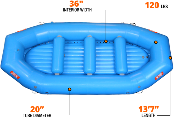 The Pro 13.5 is only 2” wider but basically the PRO 13 that we stretched out 7” more inches. With a combination of extra water line and larger than average tubes, the Pro 13.5 can take on big water and a few extra passengers without affecting maneuverability.